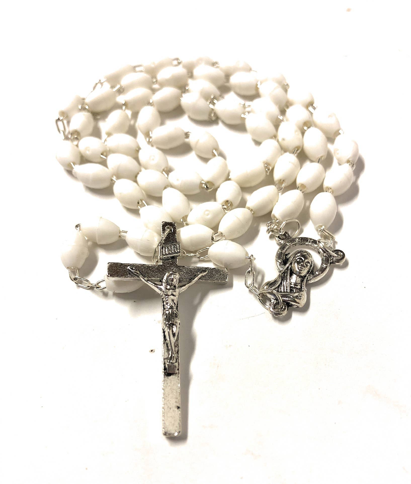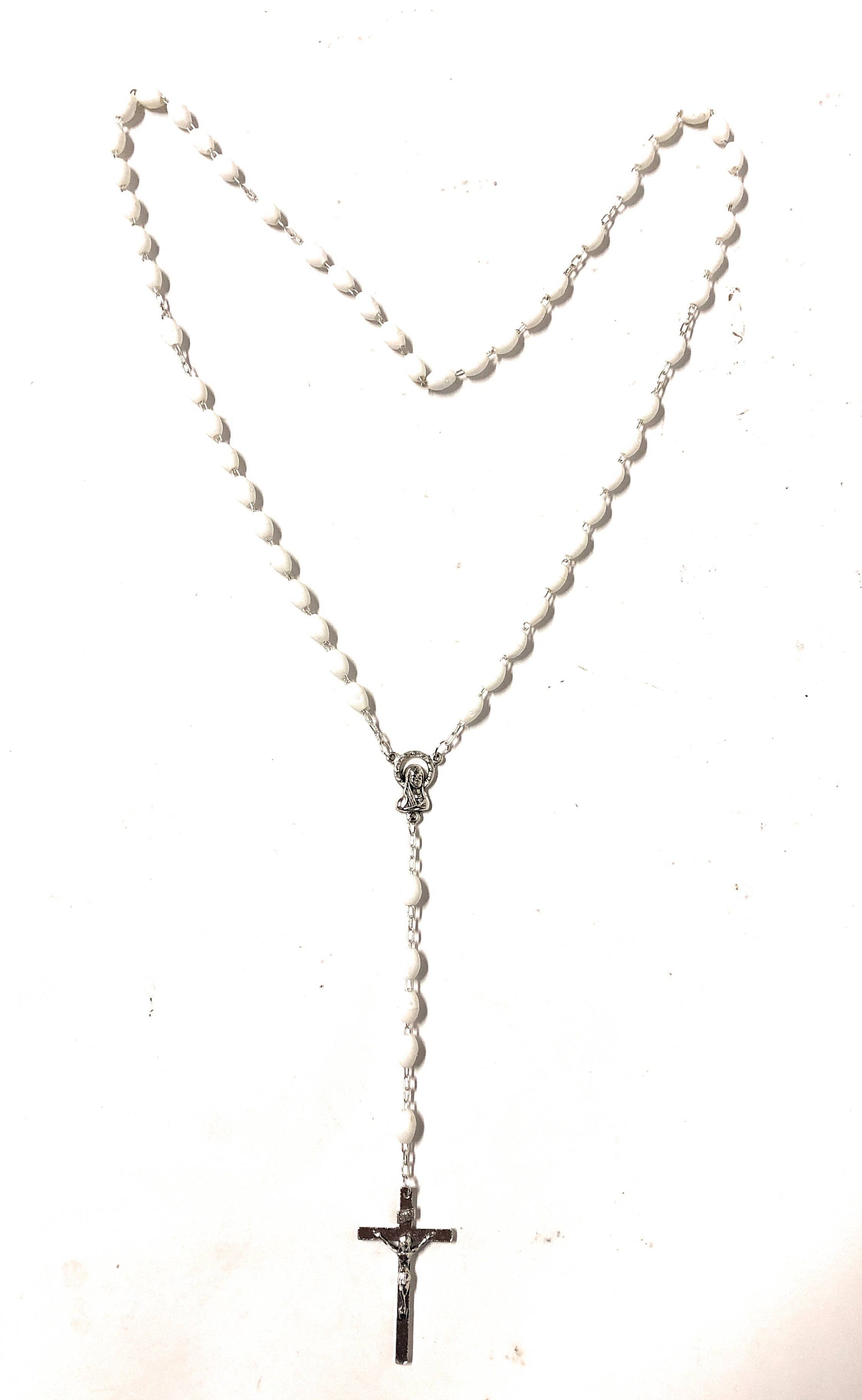 Chapelet en résine sur une chaîne avec des perles blanches mesurant 8x6 mm, fabriqué en Italie. Longueur totale 47 cm.
